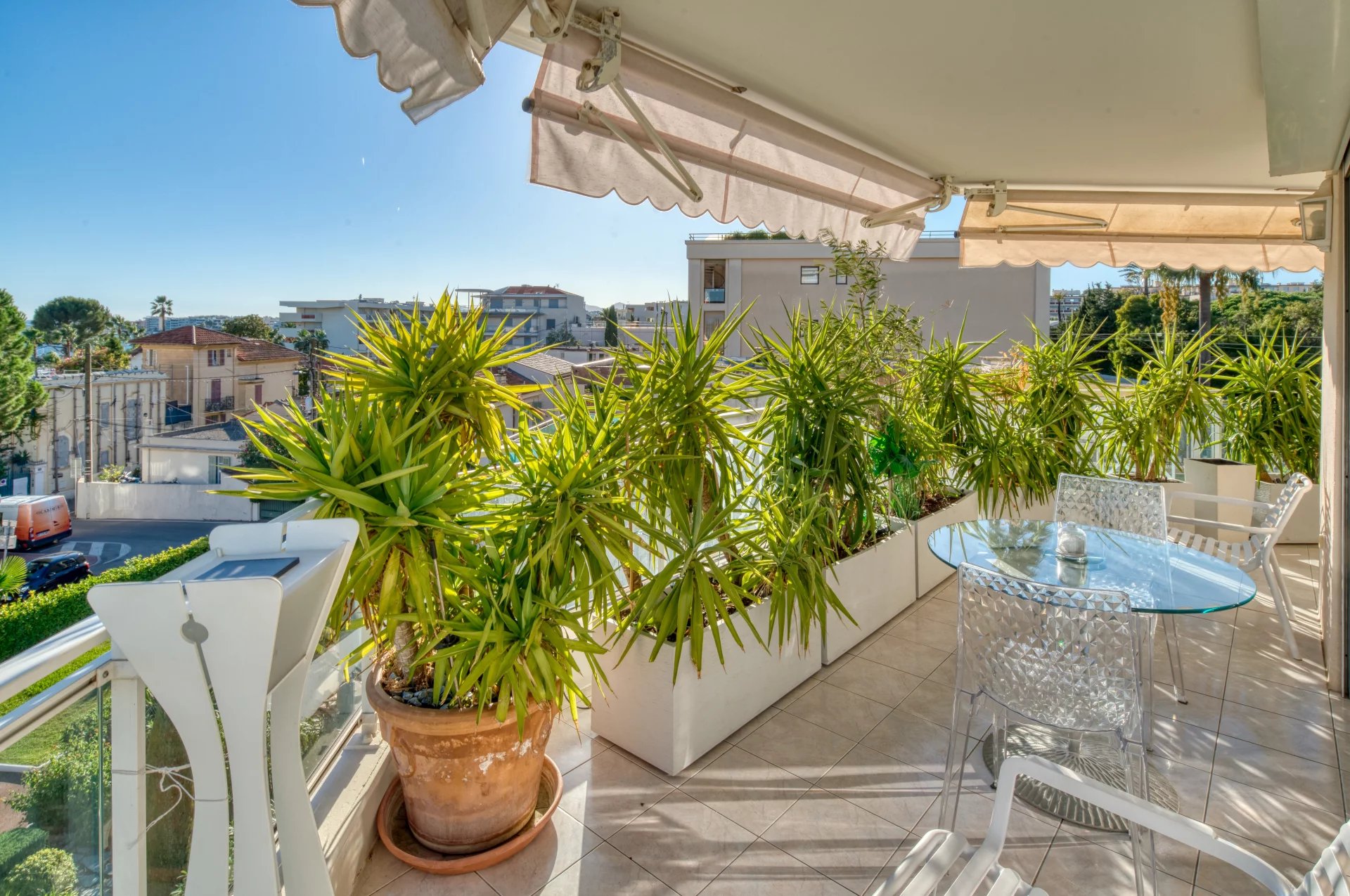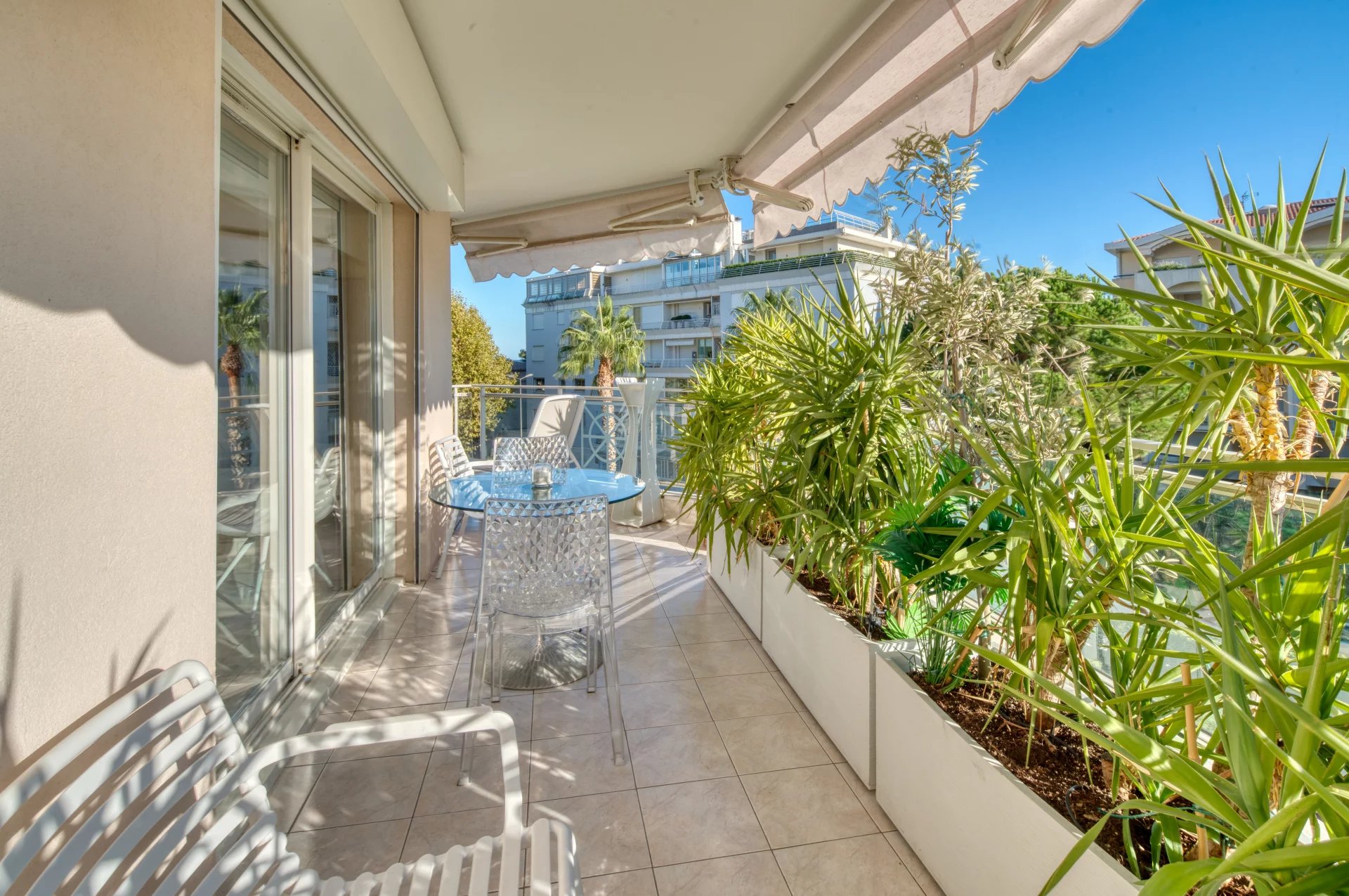 Ideally located in Cannes' prestigious Palm Beach district, within a recent, secure residence with swimming pool, this 138.19 m² corner apartment occupies the 3ᵉ floor and benefits from 56.58 m² of terraces.