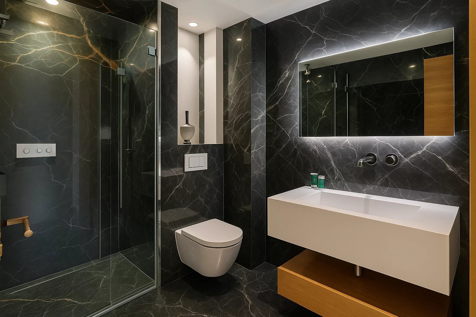 L’appartement comprend deux chambres en suite, chacune dotée de sa propre salle de bains et d’un espace dressing, offrant ainsi un confort optimal et une parfaite intimité.